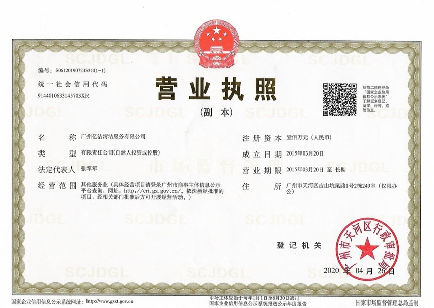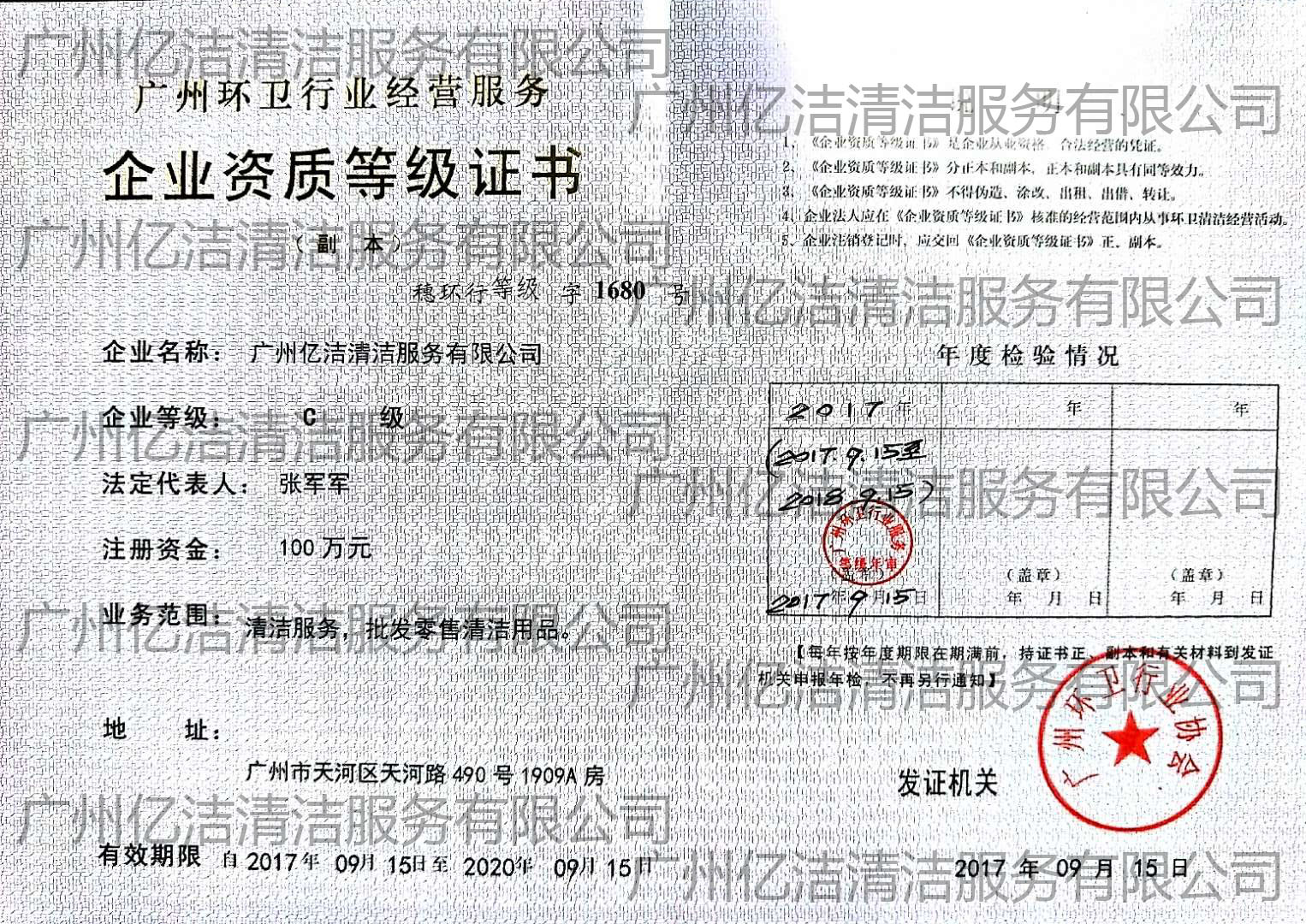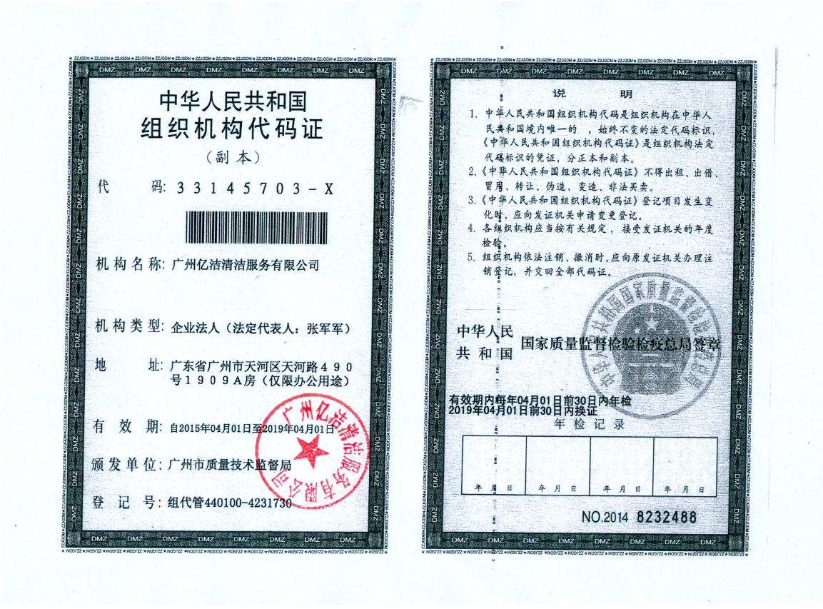 廣州億潔清潔服務有限公司是經廣州市工商行政管理局批準成立的(注冊資本:100萬元人民幣)。具有獨立法人資質。公司成立2015年,公司具備完善的管理體系和高素質管理隊伍,擁有特種技術人員33名,保潔服務人員上萬名,覆蓋廣州市,能及時調配并快速投入高效運行。我們的每個員工都經過公司的嚴格篩選,嚴格培訓,定期培訓后持證上崗以保證服務品質,保障客戶的權利,利益,形象等不受損失。 廣州億潔清潔公司是一家設備齊全,技術強大的綜合型清潔服務公司,為客戶提供完善服務尊定了堅定的基礎。 司于2010年全面推行了ISO9001質量管理體系認證和ISO14001國際環(huán)保體系認證。先后獲得廣州高層建筑外墻清洗維修作業(yè)【安全資質證書】、【廣州環(huán)衛(wèi)企業(yè)等級證書C級資質】、廣州疾控中心頒發(fā)的【四害消殺服務資質證】、【空氣治理A級資質】、中國石材協會頒發(fā)的【石材資質B級資質】等。 廣州億潔清潔服務有限公司致力于打造專業(yè)、實惠、靠譜的保潔服務公司,把專業(yè)的事情交給專業(yè)的我們,您放心! 億潔清潔服務項目: 廣州保潔服務:新建樓宇、別墅、酒店、醫(yī)院、辦公樓、賓館、企事業(yè)單位廠房竣工后開荒及裝修后精細保潔.工程保潔服務。 廣州物業(yè)托管:為廣州市各大企事業(yè)單位、賓館、政府機關、小區(qū)物業(yè)、酒店及廠房提供專業(yè)化保潔、園林、設施維護等管理服務。 廣州高空作業(yè):高空玻璃幕...[詳情]